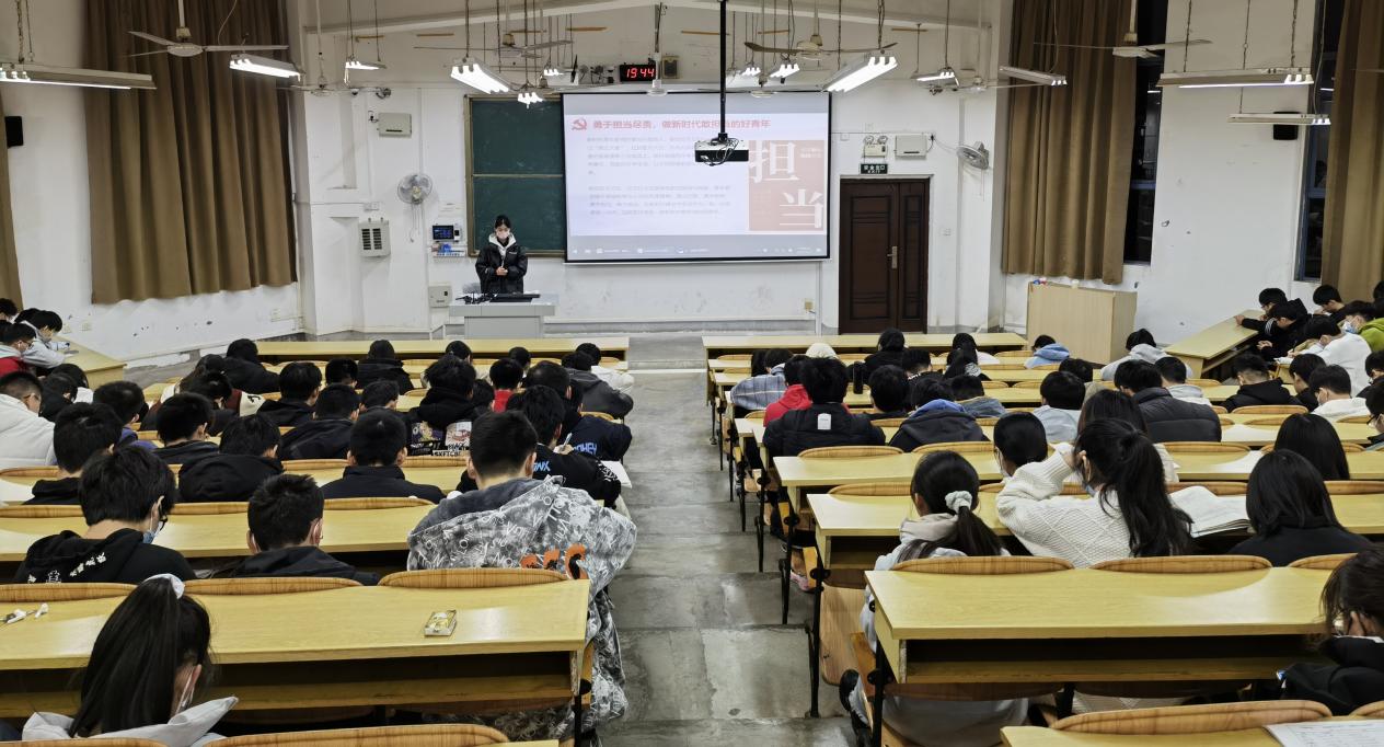 为提高同学们思想觉悟,争做有理想敢担当能吃苦肯奋斗的新时代青年,12月7日晚上,由我院主办的“学做新时代青年”宣讲会在04525举行,本次宣讲会邀请20级中共预备党员黄丹露同志担任主讲,共有200余名学生参加。