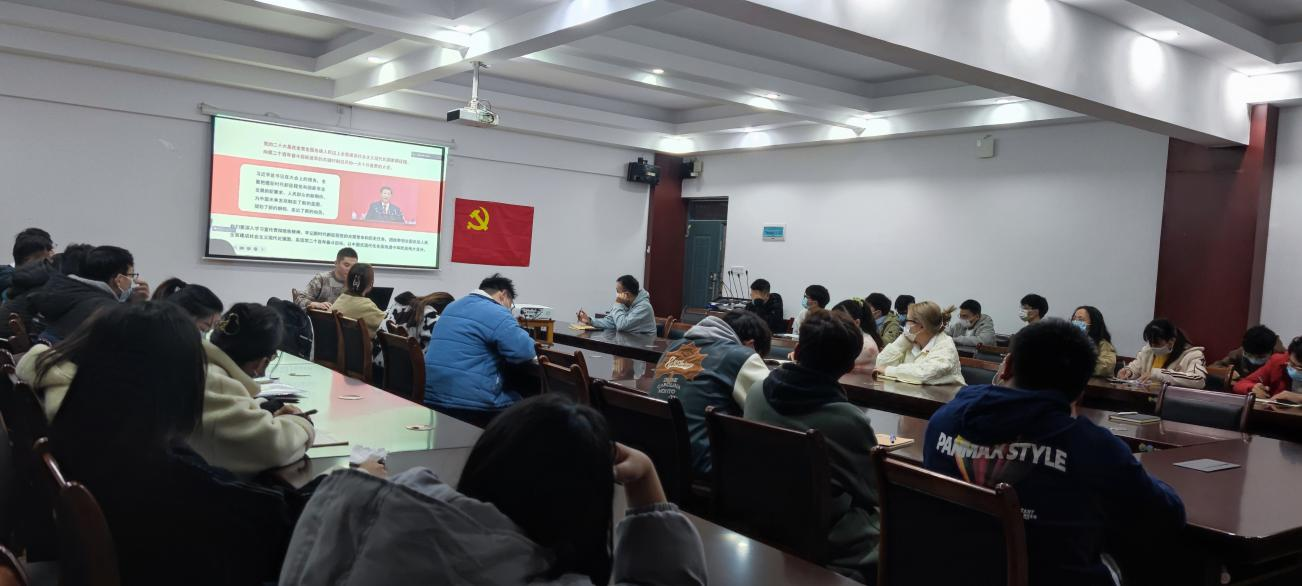会议开始,党支部副书记刘吉刚就《党的二十大报告学习辅导百问》、《二十大党章修正案学习问答》、《党的二十大文件汇编》的相关内容进行了学习心得分享。