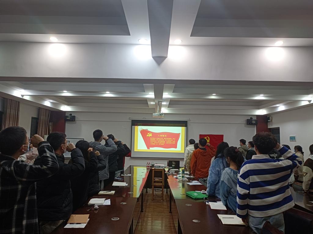 会议最后,支部书记带领支部全体党员同志面向党旗重温入党誓词。誓言铿锵,信仰坚定。全体党员不忘初心,凝心聚力担使命,奋楫扬帆新征程。