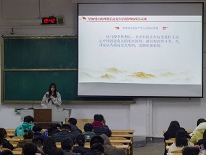 会上,辛月同志从红岩精神的发源地出发,以历史进程为导向,向我们展现了红岩精神的深刻含义:红岩精神是中华民族精神的充分展示和伟大升华,同时也是中国共产党优良传统和作风的体现,是中国共产党精神宝库中独具风采的璀璨明珠。这其中所展现出来的中国共产党人和革命烈士所具有的“出淤泥而不染,同流不合污”的政治品格和善处逆境,宁难不苟的英雄气概也令我们折服。最后,辛月同志强调,我们青年大学生要在弘扬红岩精神中涵养浩然正气,紧跟党的步伐,彰显我们新时代中国青年的独特精神气质。