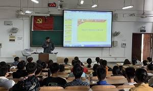 4月13日中午我院在05306展开了第二十八期入党积极分子培训班第二讲“中国共产党创立及其发展”专题党课,由我院学工组长兼本科生第二党支部书记唐源江主讲,共有110余名学员参加。