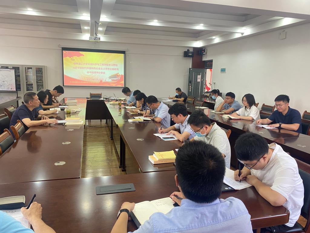 5月29日上午,环境科学与工程学院党委领导班子在雁山校区12407会议室举行“深入学习贯彻习近平新时代中国特色社会主义思想,坚定信心步调一致汇聚学院高质量发展强大合力”读书班读书分享会。分享会由学院党委书记姜子亮主持,学院班子成员、党支部书记、教研室主任参加。
