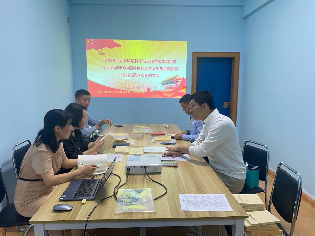 5月27日下午,环境科学与工程学院党委领导班子开展“深入学习贯彻习近平新时代中国特色社会主义思想,坚定信心步调一致汇聚学院高质量发展强大合力”读书班第八次专题学习会。学习会在屏风校区08507会议室召开,由学院党委副书记郝文佳主持,学院班子领导成员参加。