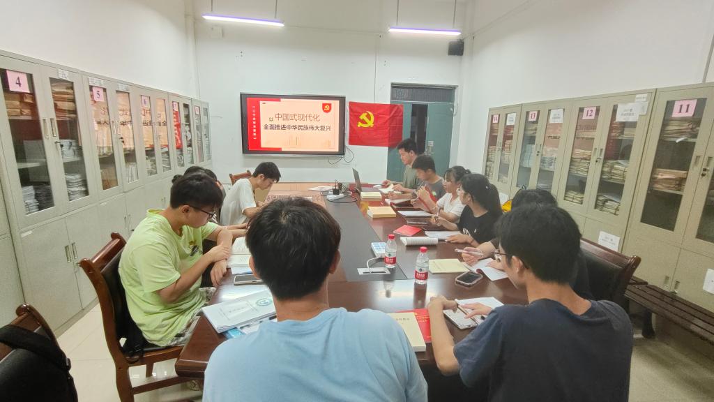 为更深刻的学习和感悟中国共产党第二十次全国代表大会会议精神,6月25日,本科生第三党支部于12415开展“以中国式现代化全面推进中华民族伟大复兴”主题党课,会议由支部副书记高鑫瑞同志主持,支部书记孙云龙老师及支部全体党员参加本次会议。