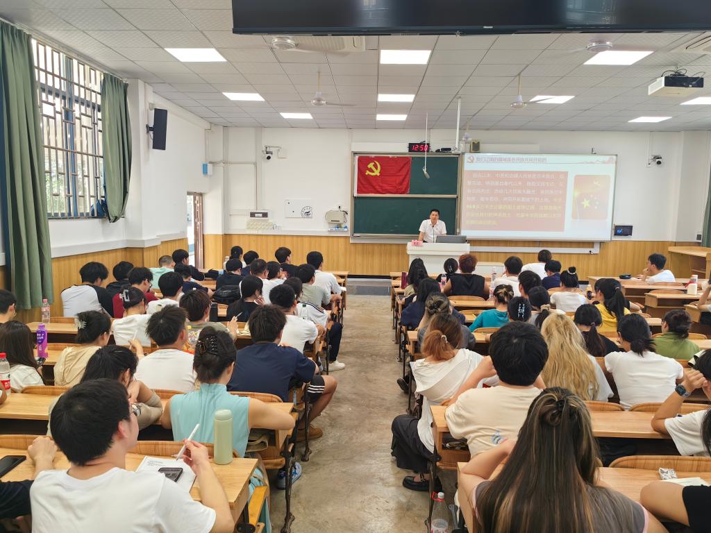 为提高预备党员的思想政治素质,强化党员意识,加强党性锤炼,5月24日,学院党委书记代武社在雁山校区06104教室为环境科学与工程学院、数学与统计学院、物理与电子信息工程学院、商学院、艺术学院联合分党校第二十七期预备党员培训班全体学员讲授题为《铸牢中华民族共同体意识》专题党课,联合分党校培训班全体学员参加党课学习。
