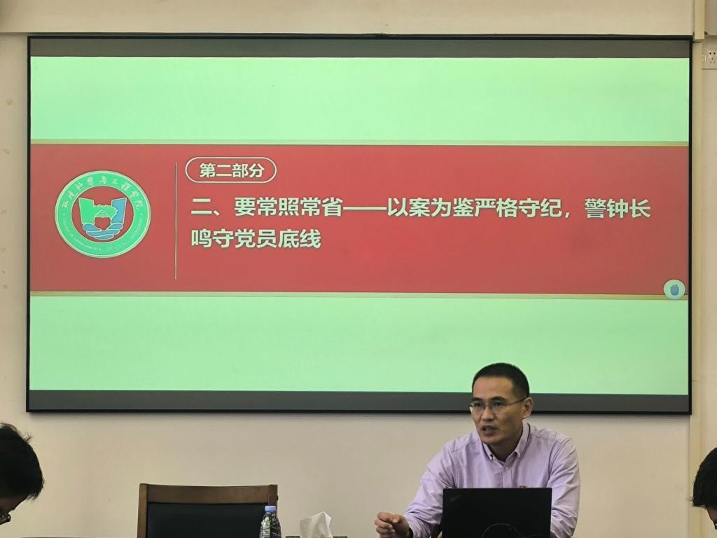 学院党委副书记、纪委书记作了题为《党纪学习教育应习以为“常”》的专题培训,他从“常学常新”、“常照常省”、“常思常悟”三个方面讲述了开展党纪学习教育的重要意义以及党员干部如何永葆清廉本色。