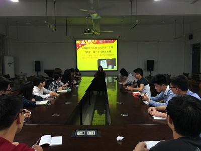 本次专题学习主题是“做好学院“两学一做”学习教育工作,为什么学?怎么学?”,本次活动首先是由本支部书记夏晴给支部全体党员进行党课教育,清晰明了地为同志们阐明了本次专题学习的核心内容与核心思想,而后党员们逐一发表自己近期为“两学一做”内容的学习内容与学习心得。大家各抒己见,自身经验的交流和讨论,党员们受益良多,在每位党员心中都会有一把明镜和准则指引今后的学习、工作和生活。