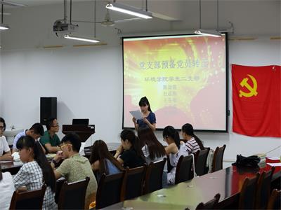 为进一步推进“两学一做”学习教育,6月6日晚,环境学院学生二支部在12407召开全体党员大会。会议由支部副书记邓文波主持,支部书记唐红兵及全体支部成员参加了会议。会议包括预备党员转正、接收预备党员及重温入党誓词等内容。