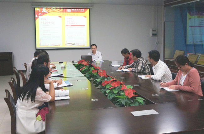 通过认真学习领会全会精神,党员同志们深化了对十八届五中全会的理解和认识,纷纷表示一定要深刻领会、切实贯彻全会精神,准确把握“十三五”时期发展的主题、主线、目标任务和重大举措,紧密结合学校实际,把学习贯彻党的十八届五中全会精神与当前学校正在开展的“两学一做”专题教育结合起来,与学校“十三五”科学规划结合起来,坚定干事创业、奋发进取的信心和决心,为学校的发展和国家的建设贡献自己的力量。
