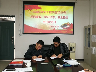 会议最后,组织签订了《环境科学与工程学院2019年社会治安综合治理、安全稳定和消防安全目标管理责任书》。