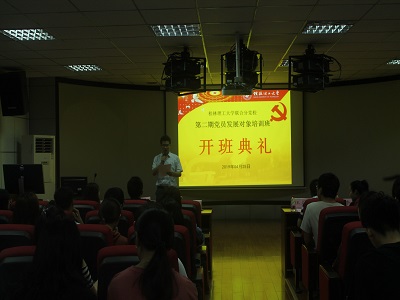 2019年4月25日19点,环境科学与工程学院、旅游与风景园林学院、理学院、化学与生物工程学院、公共管理与传媒学院、外国语学院联合分党校第二期党员发展对象培训班开班典礼在桂林理工大学雁山校区04616顺利举行。