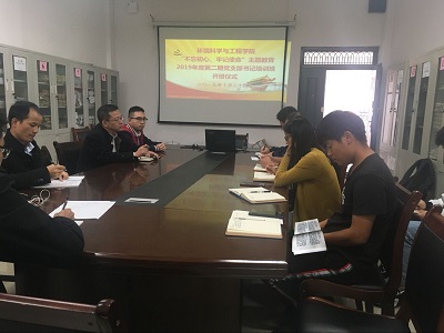 10月24日下午,我院在雁山校区12415会议室举行“不忘初心、牢记使命”主题教育2019年度第二期支部书记培训开班仪式暨专题辅导报告。学院支部书记、副书记参加会议,会议由院党委书记姜子亮书记主持。