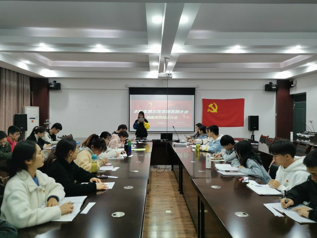 11月23日晚,我院本科生第三党支部在雁山校区12407会议室组织召开预备党员转正大会,本次会议由党支部副书记张颖颖主持会议,全体党员同志参加会议。大会主要讨论杨诗琪、唐栎涵、代彬、连英涵、王紫维、黄慧敏和龙飘七名同志转正的问题。