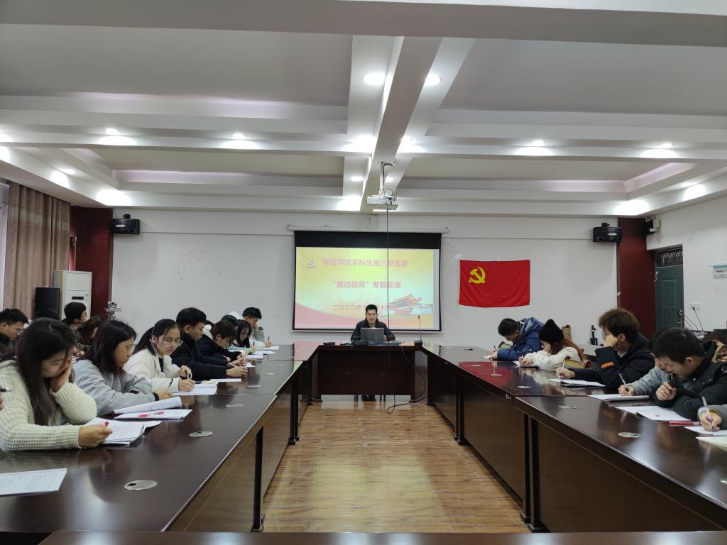 为深入学习宣传贯彻党的十九大精神,开展理想信念宗旨和纪律教育,进一步推进廉政文化建设和廉洁教育工作,12月18日晚,我院本科生第三党支部在12407会议室开展了“大力加强对党忠诚”主题教育集中研讨,本次党课由支部书记孙云龙同志主持。