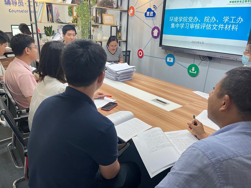 为了进一步提高认识、统一思想,更好地做好迎接本科教育教学审核评估工作,2023年6月7日,环境学院党办院办、学工办在雁山校区萃华楼12408大数据会议室集中开展了“本科教育教学审核评估相关知识”专题学习活动。活动由学院党委副书记郝文佳主持。