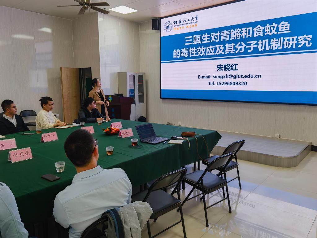 会上、广西新桂环保科技集团介绍了他们公司建成的集基因工程斑马鱼研发、繁育、生产和产业应用的国内先进的斑马鱼技术平台。并通过PPT展示介绍了他们借助国际领先的斑马鱼生物检测技术、基因编辑技术,开发的包含转基因斑马鱼和基因突变斑马鱼的基因工程斑马鱼品系100余种,并成功将斑马鱼生物检测技术应用于环境检测、农产品检测、化妆品和保健食品检测、中药材检测等产业应用场景,服务区域社会经济的高质量和绿色发展,为八桂大地青山常在、清水长流、空气常新保驾护航。同时我院环境工程中心实验室副主任宋晓红高级实验师就模式鱼种对环境中污染物的应激方面做了相关的报告,与新桂环保科技集团进行了深层次的科研交流。