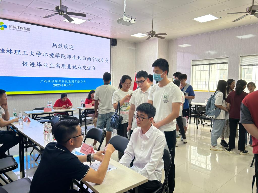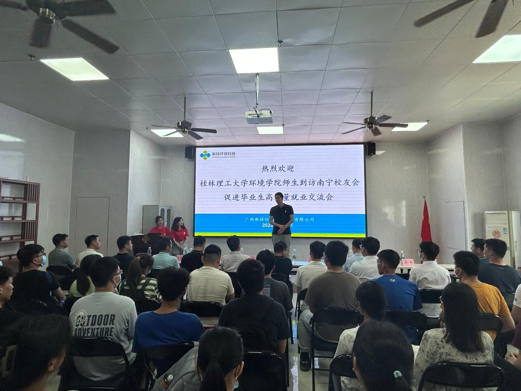 会上,南宁校友会会长、新桂环保科技集团有限公司负责人甘惠云代表南宁校友会对我院师生的到来表示热烈的欢迎,并向大家介绍南宁校友会的基本情况,他指出,面临严峻的就业形势,同学们要认真分析自身实际,做好充分准备,积极行动,不放过任何一次机会。学院党委副书记郝文佳在致辞中表示,校友是学校宝贵的资源、亮丽的名片,欣喜地看到校友们在各自领域创造佳绩,同时,感谢南宁校友会的精心筹备及各大校友企业的鼎力支持,2023届毕业生就业形势严峻,他希望,各大校友企业能够积极响应,推动学院就业高质量发展。