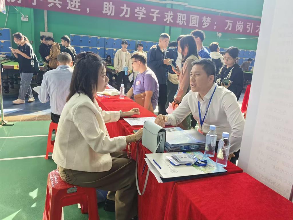10月25日,学校在雁山校区举办2025届毕业生秋季首场线下双选会。学院党委领导班子、各教研室老师和毕业班辅导员深入双选会现场指导毕业生就业。